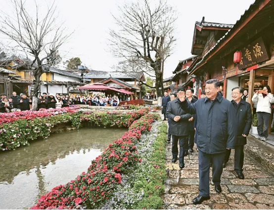 2025年3月19日至20日,中共中央总书记、国家主席、中央军委主席习近平在云南考察。这是19日下午,习近平在丽江古城考察时,与居民、游客互动交流。 新华社记者 燕雁/摄