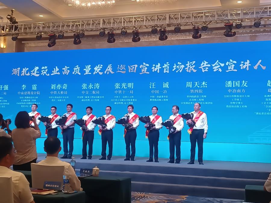 “国之重器·荆楚建造”湖北建筑业高质量发展巡回宣讲活动暨首场报告会于8月11日上午在武汉举行,9家中国建筑业领军企业负责人、大师、工匠、技术骨干等,通过讲述建设者的故事,展现湖北建设成就、企业发展风采。
