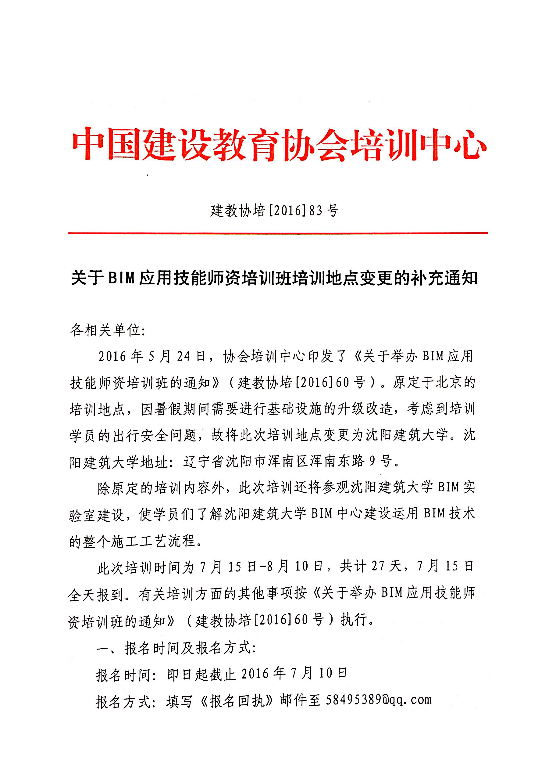关于举办BIM应用技能师资培训班的补充通知