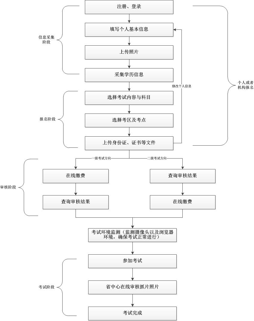 4、考生网上报名时请认真填写个人基本信息,上传相关证明材料扫描件并选择考点,审核通过后,在线缴纳报名费完成报名;