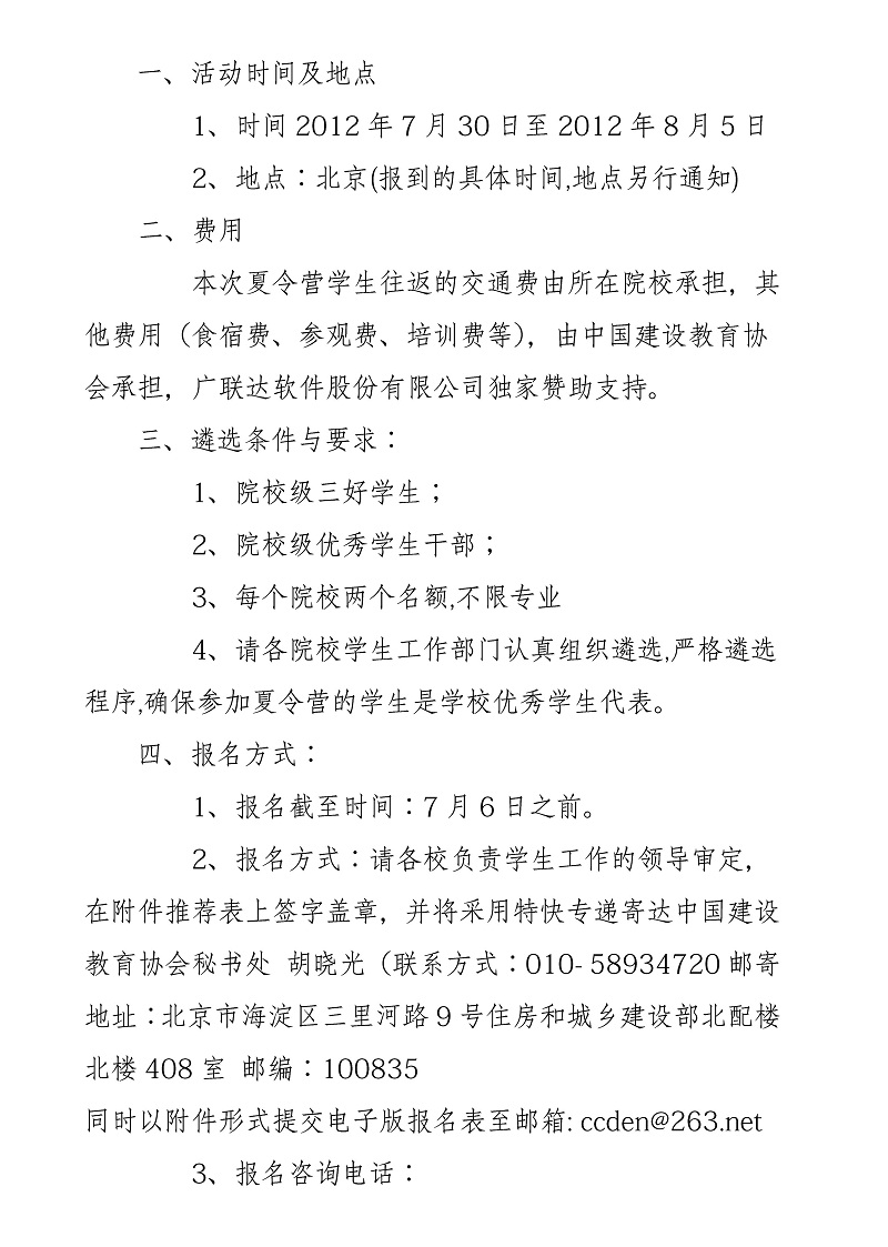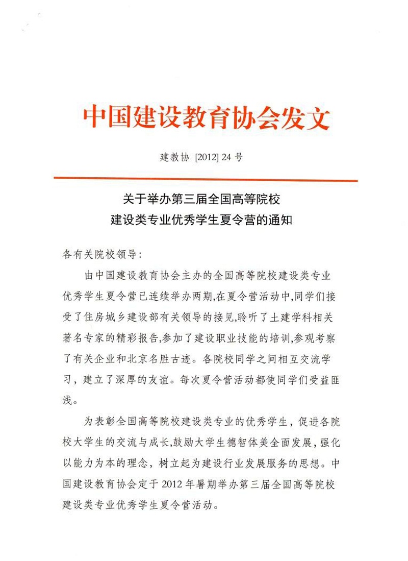 关于举办第三届全国高等院校建设类专业优秀学生夏令营的通知