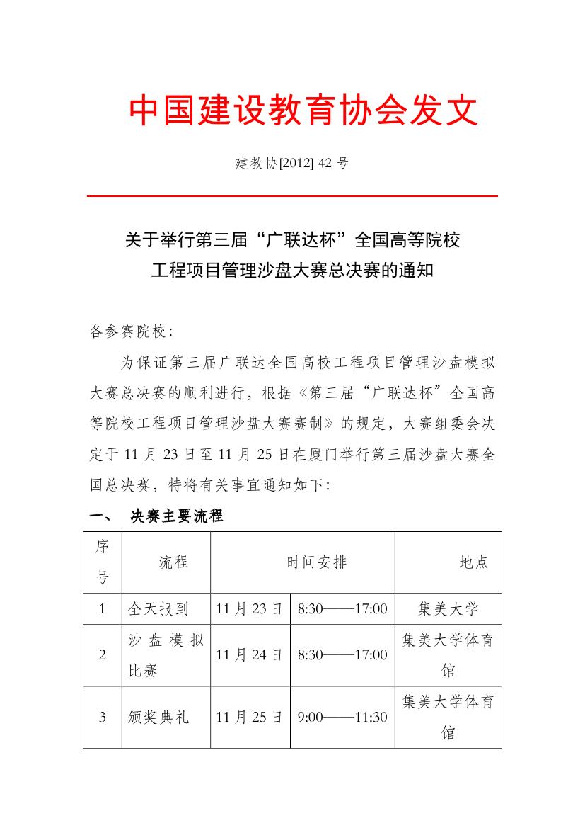 关于举行第三届“广联达杯”全国高等院校工程项目管理沙盘大赛总决赛的通知