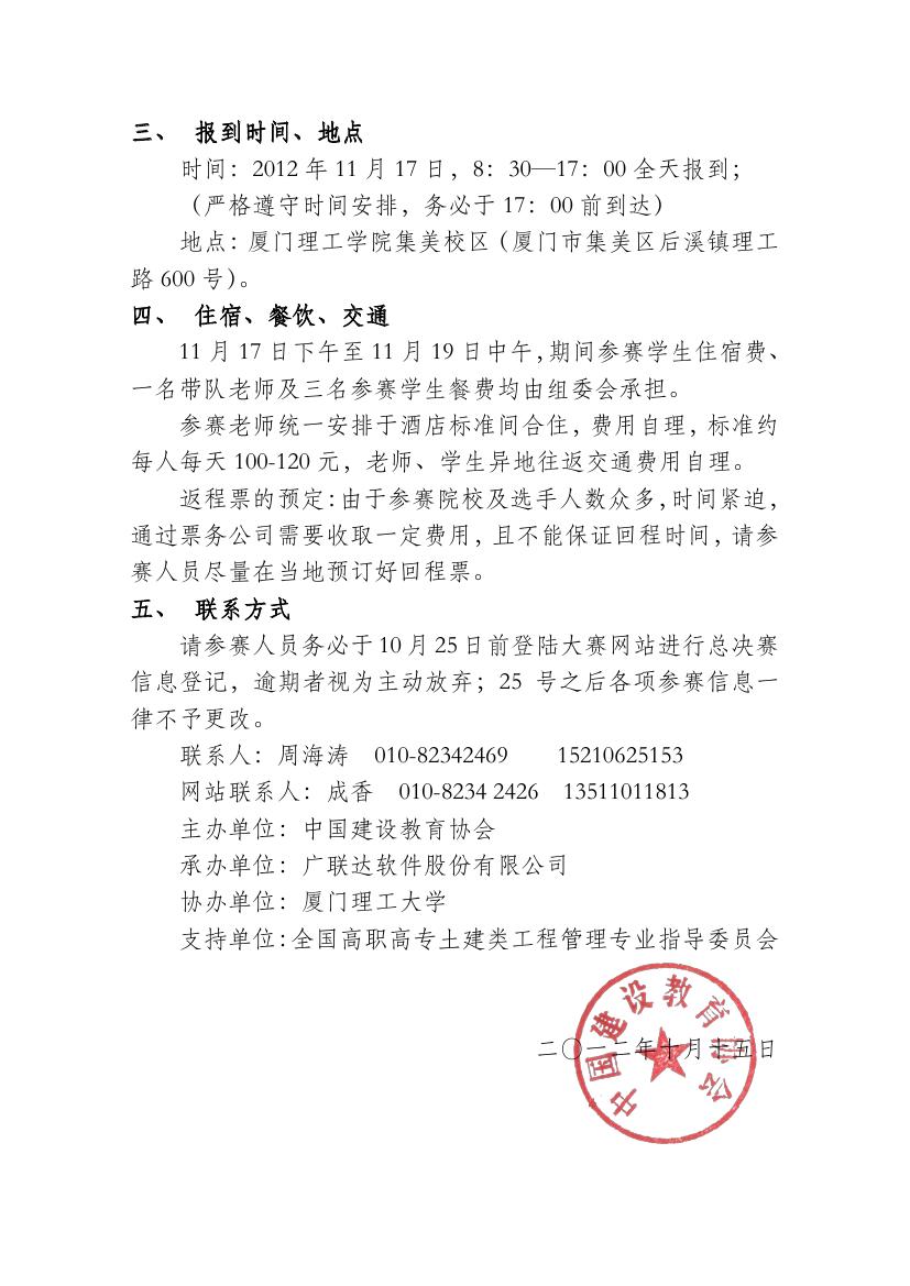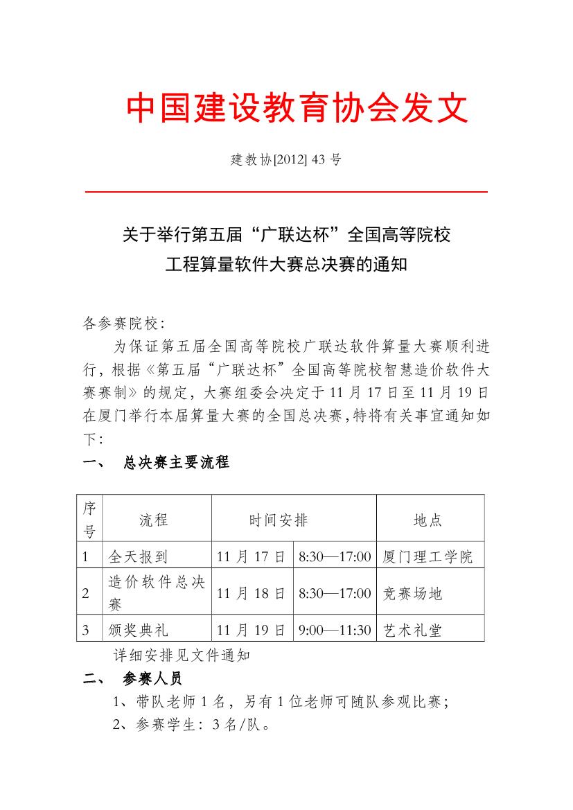 关于举行第五届“广联达杯”全国高等院校工程算量软件大赛总决赛的通知