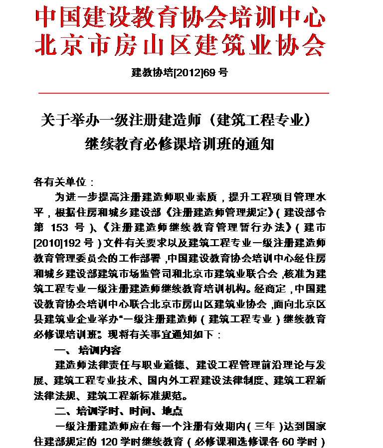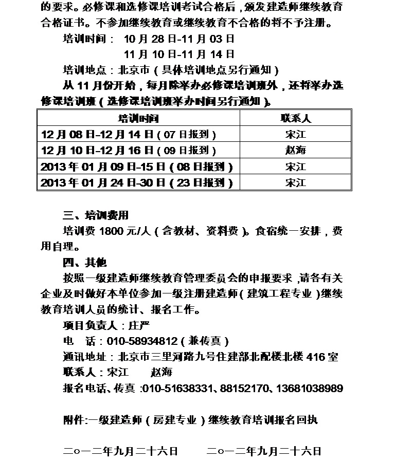 附件:一级建造师(房建专业)继续教育培训报名回执