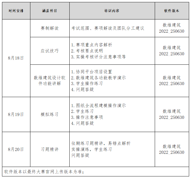 加深参赛指导教师及学生对2025年全国数字建筑创新应用大赛考试大纲的理解明确大赛考试方向、重点,掌握大赛相关软件的基础应用实操,强化应用能力,熟悉比赛实际的考试流程及内容。
