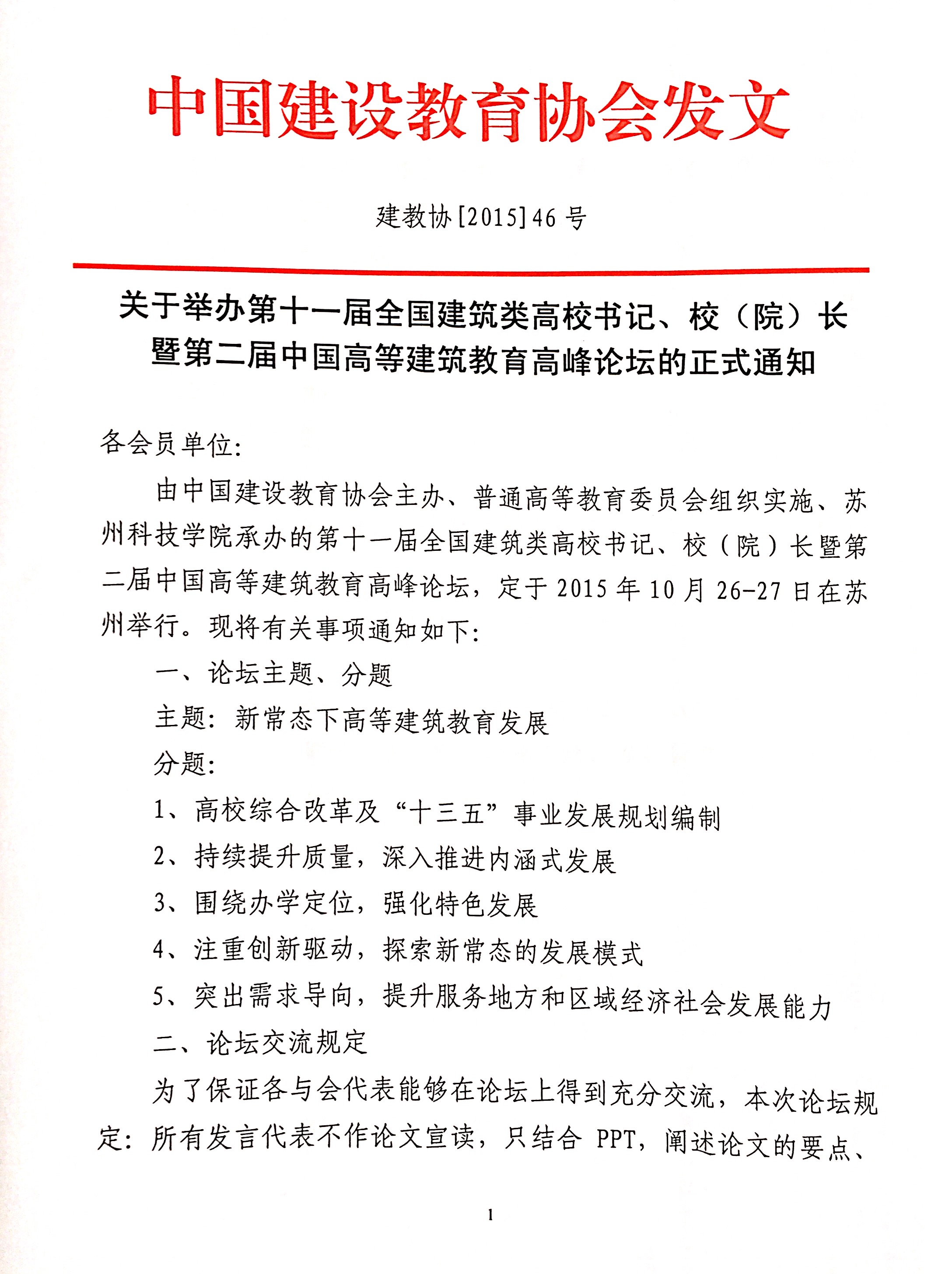 关于举办第十一届全国建筑类高校书记、校(院)长暨第二届中国高等建筑教育高峰论坛的正式通知