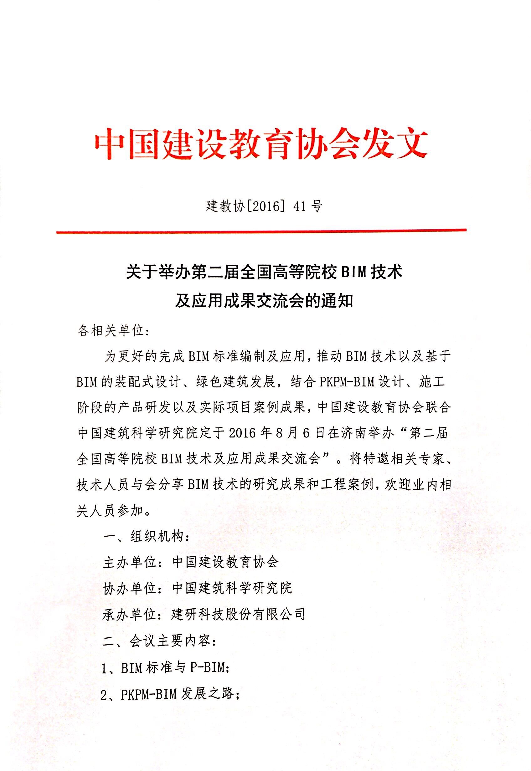 关于举办第二届全国高等院校BIM技术及应用成果交流会的通知