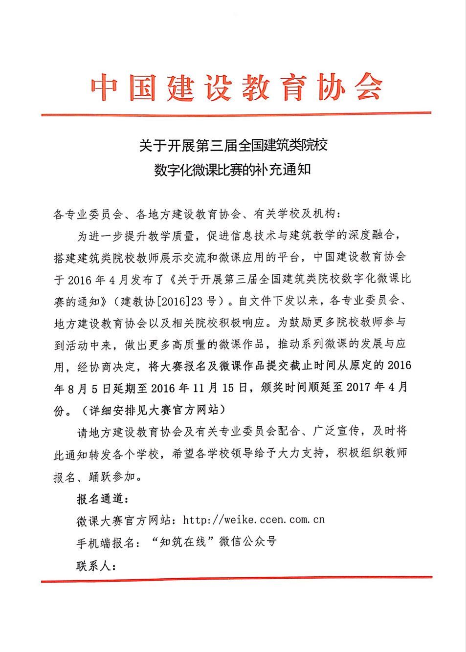 关于开展第三届全国建筑类院校数字化微课比赛的补充通知