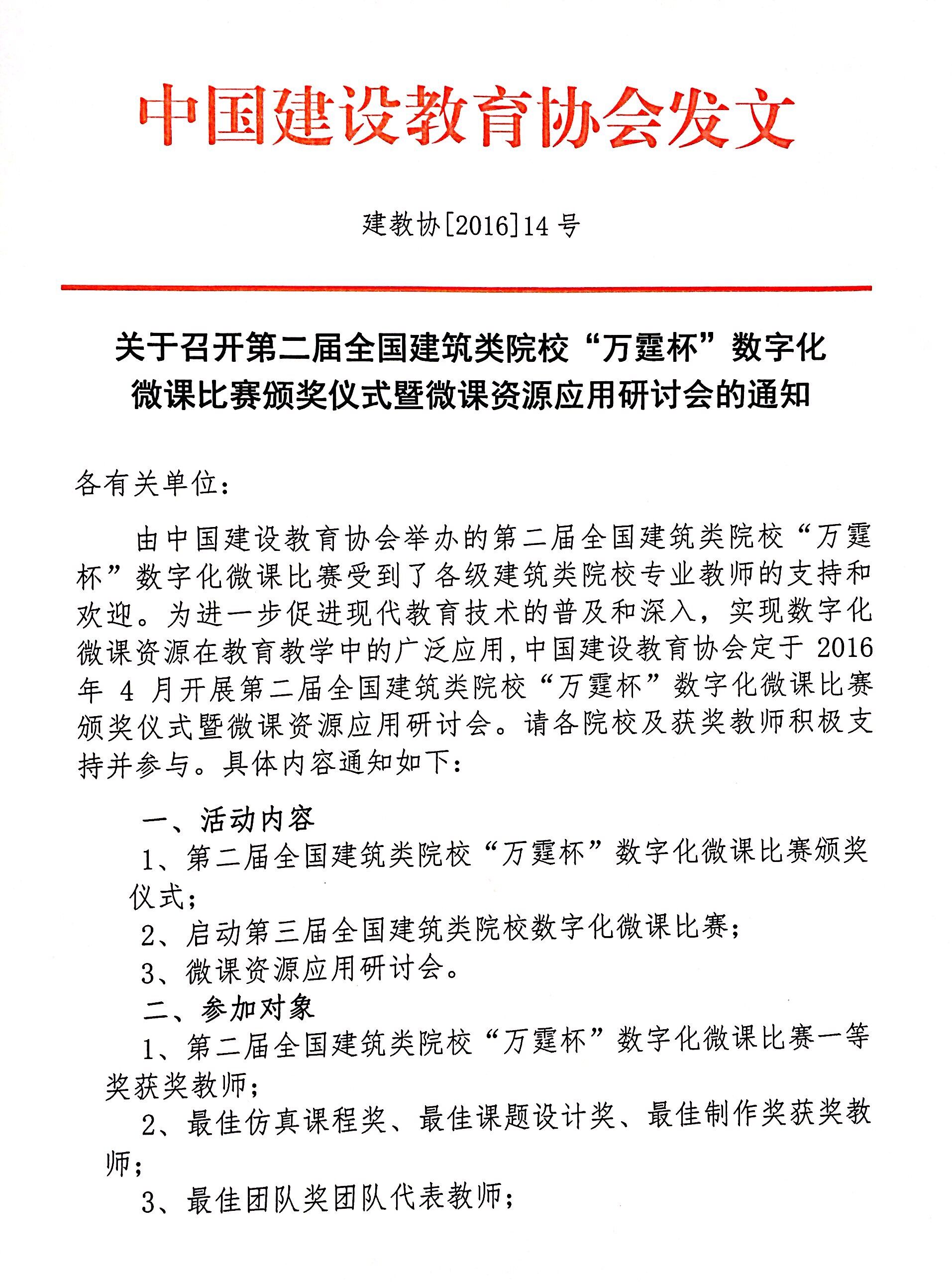 关于召开第二届全国建筑类院校微课比赛颁奖仪式通知