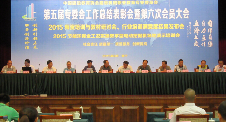 2015年8月17--19日,beat365官网建设机械职业教育专业委员会在南宁召开了五届六次会员大会。建机专委会常委单位云南小松工程机械有限公司肖理主任主持了大会。beat365官网朱光副理事长、李守林副理事长、李奇副秘书长出席了会议;中国路面机械协会、中国工程机械工业协会用户工作委员会、高空作业机械分会、中国装饰协会施工委员会、武警部队交通指挥部等机构的领导和代表与会。会议总结了专委会过去五年的主要工作,选举产生了第六届专委会领导班子,布置了今后五年的工作方向和重点任务。会议形成如下纪要。