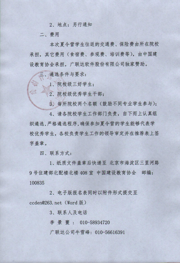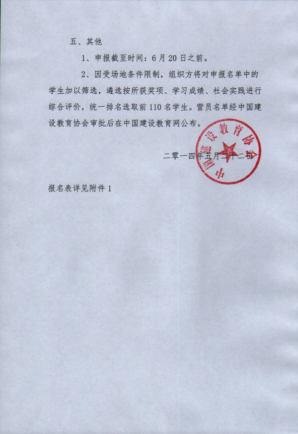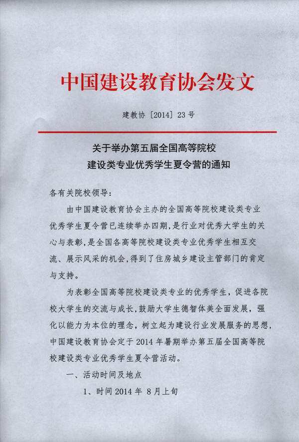 关于举办第五届全国高等院校建设类专业优秀学生夏令营的通知