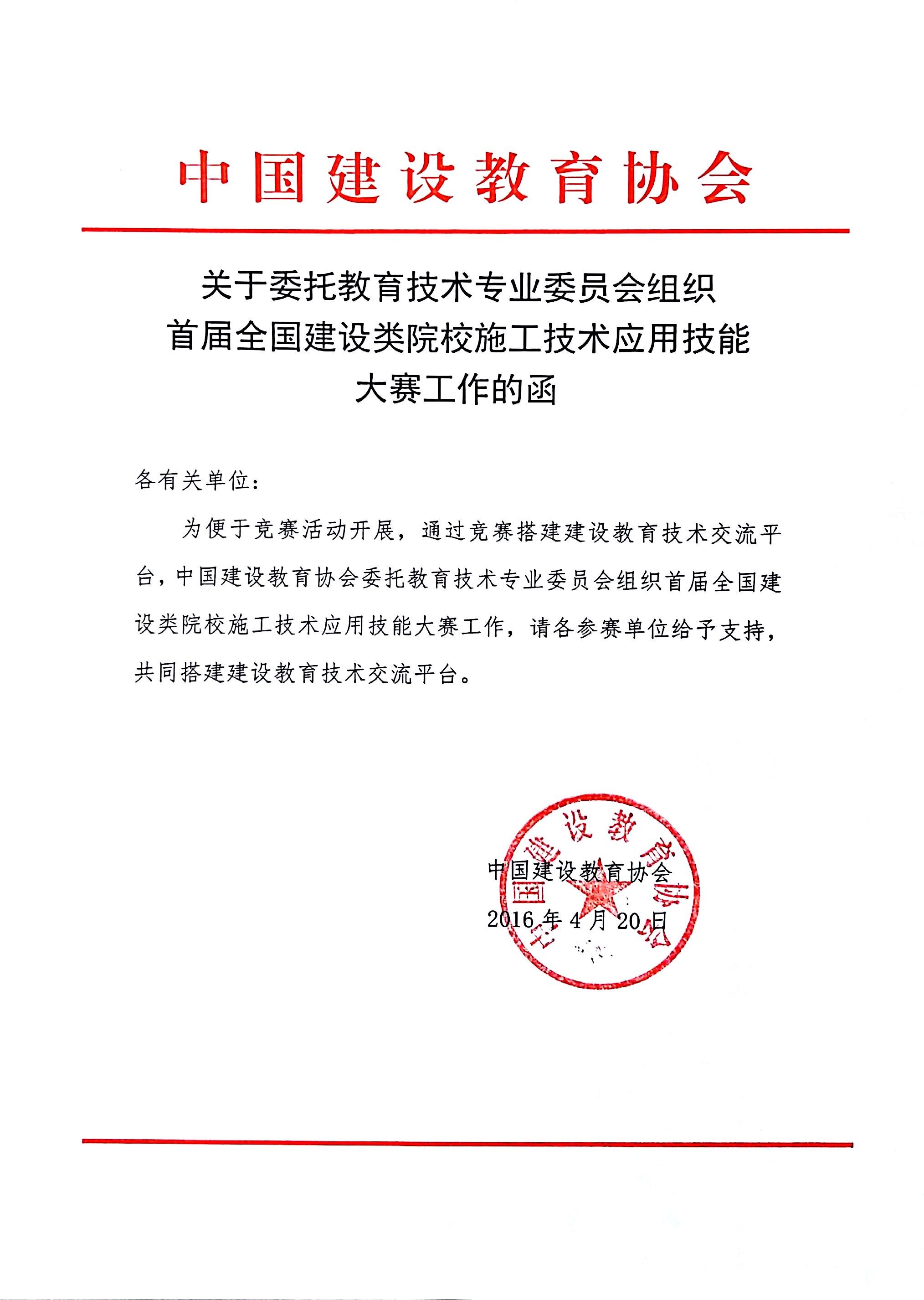 为便于竞赛活动开展,通过竞赛搭建建设教育技术交流平台,beat365官网委托教育技术专业委员会组织首届全国建设类院校施工技术应用技能大赛工作,请各参赛单位给予支持,共同搭建建设教育技术交流平台。