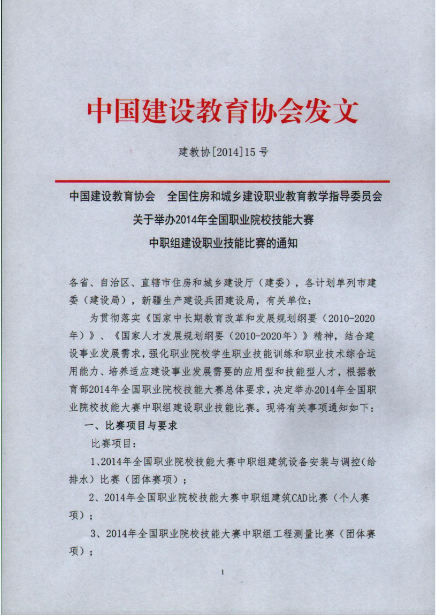 beat365官网 全国住房和城乡建设职业教育教学指导委员会关于举办2014年全国职业院校技能大赛中职组建设职业技能比赛的通知