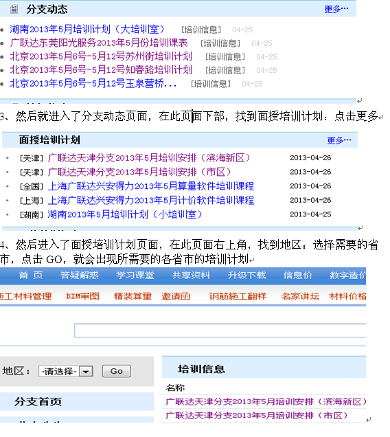2、如果各参赛院校需要参加培训,可在当地广联达软件公司分公司参加培训,培训时间及地点、报名方式在附件4中有详细操作方法,请按操作步骤进行报名,参加培训。