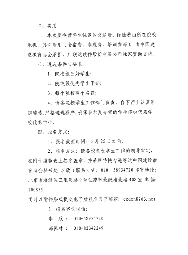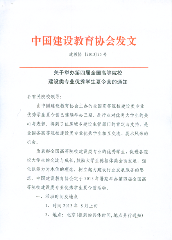 关于举办第四届全国高等院校建设类专业优秀学生夏令营的通知