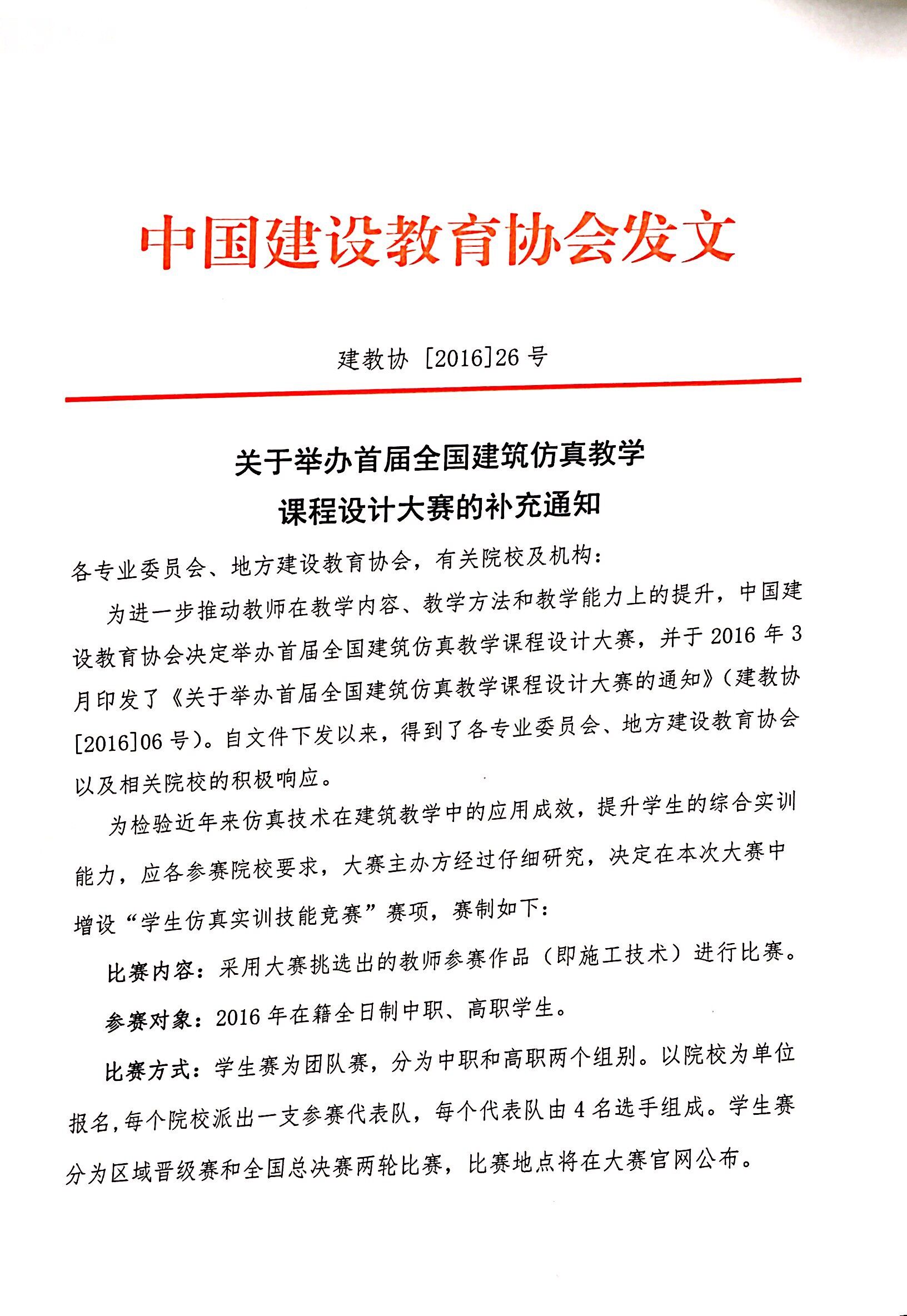 关于举办首届全国建筑仿真教学课程设计大赛的通知