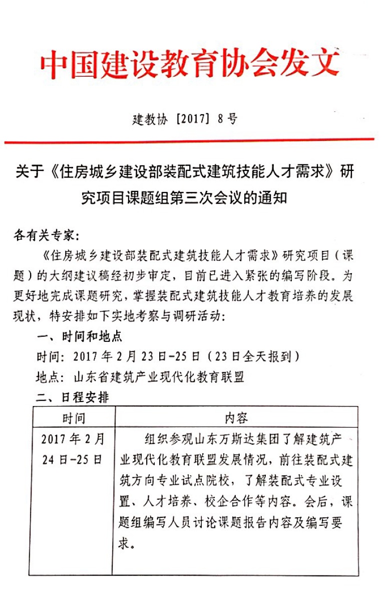 关于《住房城乡建设部装配式建筑技能人才需求》研究项目课题组第三次会议通知