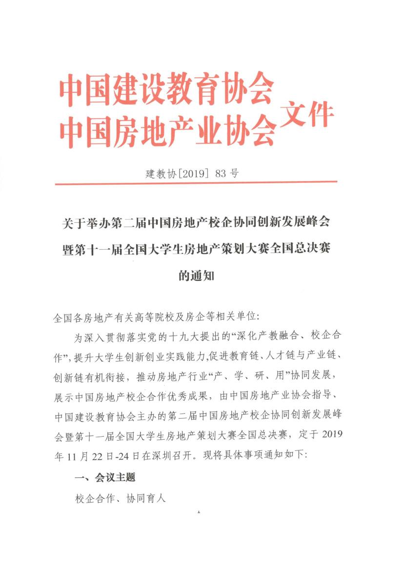 关于举办第二届中国房地产校企协同创新发展峰会 暨第十一届全国大学生房地产策划大赛全国总决赛 的通知