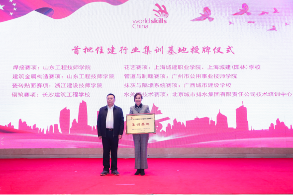 大会对住房和城乡建设行业选拔赛优秀承办单位、优秀组织单位、优秀指导教师和一等奖选手进行表彰,向8个赛项集训基地授牌。