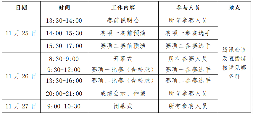(三)详细竞赛规程及其它参赛要求,将在赛务群中发布。