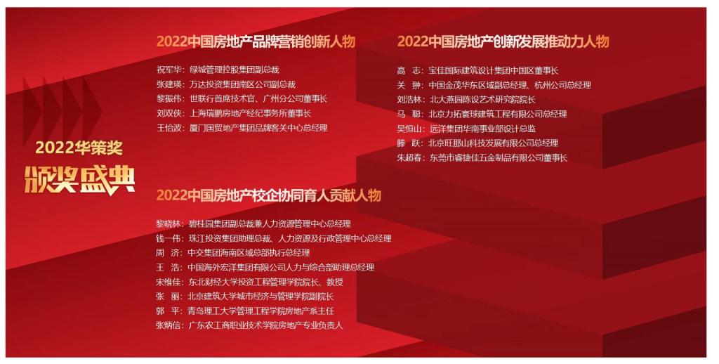 尽管2022年度行业发展速度缓于往年,但仍有很多企业和从业者为行业发展做出杰出贡献,为鼓励优秀企业和地产人开拓进取,专委会选出一批推动中国房地产行业产教融合型创新人物、标杆项目案例、大学生雇主企业进行推广宣传。