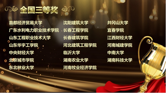 经过一天的激烈比拼,第十四届全国大学生房地产策划大赛冠军赛落下帷幕,通过方案演示、线上答辩和评委点评等环节,大赛最终决出全国特等奖、全国一等奖、创新创意全国一等奖、大数据应用与分析全国一等奖、智慧运营与管理全国一等奖、全国二等奖、全国三等奖、优秀组织高校奖、优秀指导老师奖。