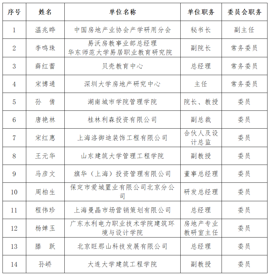 根据民政部有关规定和《beat365官网章程》,beat365官网房地产专业委员会六届会议代表大会第二次会议拟增补(含改选)副主任1名,常务委员3名,新发展会员共计14名,因年龄退休、职务调整及个人原因,变更2名,退会4名。