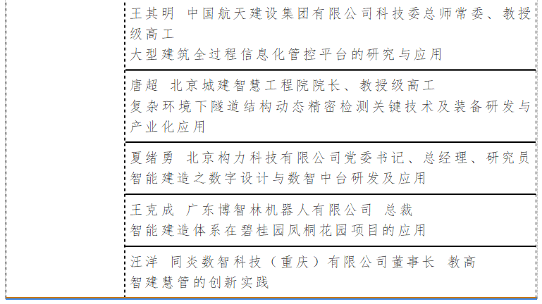 清华大学、同济大学、上海交通大学、东南大学、天津大学、哈尔滨工业大学、重庆大学、北京市建筑工程研究院有限责任公司、三一筑工科技有限公司、北京住宅产业化集团股份有限公司、中国建筑集团有限公司、中建城市建设发展有限公司、鲁班软件股份有限公司、中电建建筑集团有限公司、中铁建工集团有限公司、中国航天建设集团、北京建工集团有限公司、中交协北京交通科学研究院、北京慧筑建筑科学研究院、中国管理科学学会项目管理专业委会、北京麦格天宝科技股份有限公司、一砖一瓦科技有限公司、天津天河云筑工科技有限公司、南京慧筑信息技术研究院有限公司、北京恒安同正科技有限公司、清大华韵认证咨询中心(北京有限公司)、北京立群建筑科学研究院、北京盈建科软件股份有限公司、盎锐(上海)信息科技有限公司、云顿(北京)科技有限公司、北京城建智控科技股份有限公司、北京城建智慧工程院