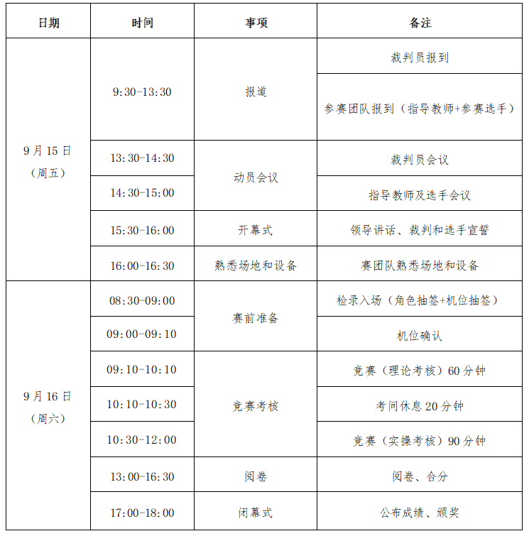 3.报名费用:此次竞赛免收报名费,交通食宿费用自理。住宿由赛点学校提供周边酒店联系方式,建议参赛单位自行提前预定,竞赛期间就餐在赛点学校食堂进行预定。