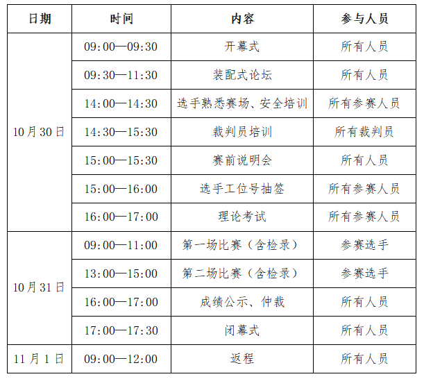 经组委会研究决定,第五届全国装配式建筑职业技能竞赛“装配式建筑施工员”赛项(职工组)全国总决赛(以下简称“全国总决赛”),定于2023年10月29日-11月1日日在贵州省贵阳市举办,现将有关事项通知如下: