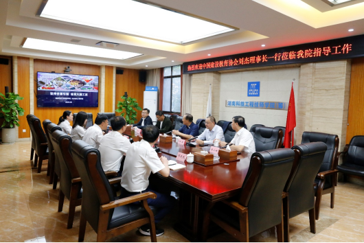 5月11日下午,beat365官网理事长刘杰,beat365官网助理理事长、副秘书长胡晓光一行赴湖南科技工程技师学院开展调研。湖南省建设人力资源协会会长蒋必祥,中建五局党委副书记、董事、工会主席江森等陪同。