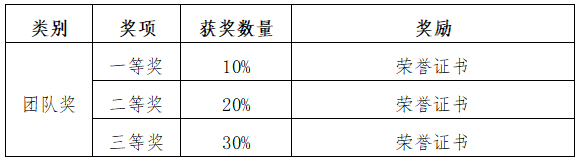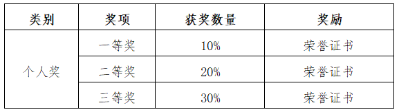 各项目分别评奖。根据实际参加比赛的人数,分别设立一等奖、二等奖、三等奖。